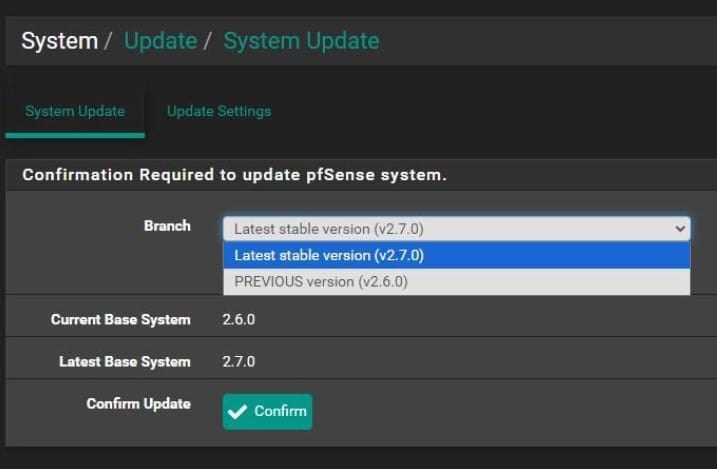 Um ponto importante, é que o pfSense pode gerar travamentos durante o processo de atualização se o usuário fizer um salto de versões. É uma boa prática realizar a atualização passando por todas as versões disponíveis até chegar na última.