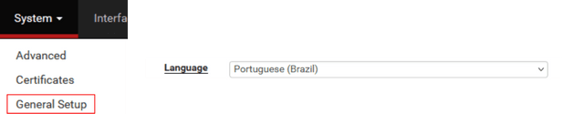 Definição do idioma: Vá em General Setup => Language e altere para nosso idioma.