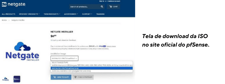 - Acesse o site oficial do PfSense, baixe a ISO mais recente.