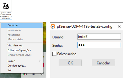 Após baixar o arquivo na sua máquina, no exemplo é Windows, execute e faça o login com usuário e senha criado no Pfsense.