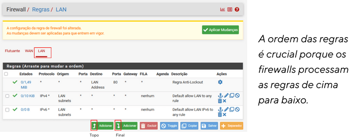 - Firewall > Regras > Lan > Adicionar regra ao topo.