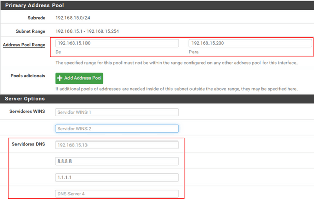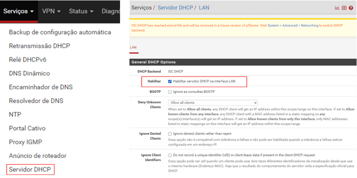 - Servidor DHCP no PfSense