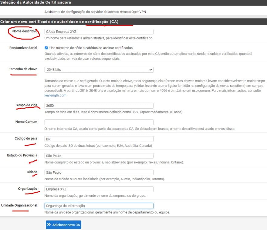 - Próximo: Vamos criar um novo Certificado de Autoridade (CA)