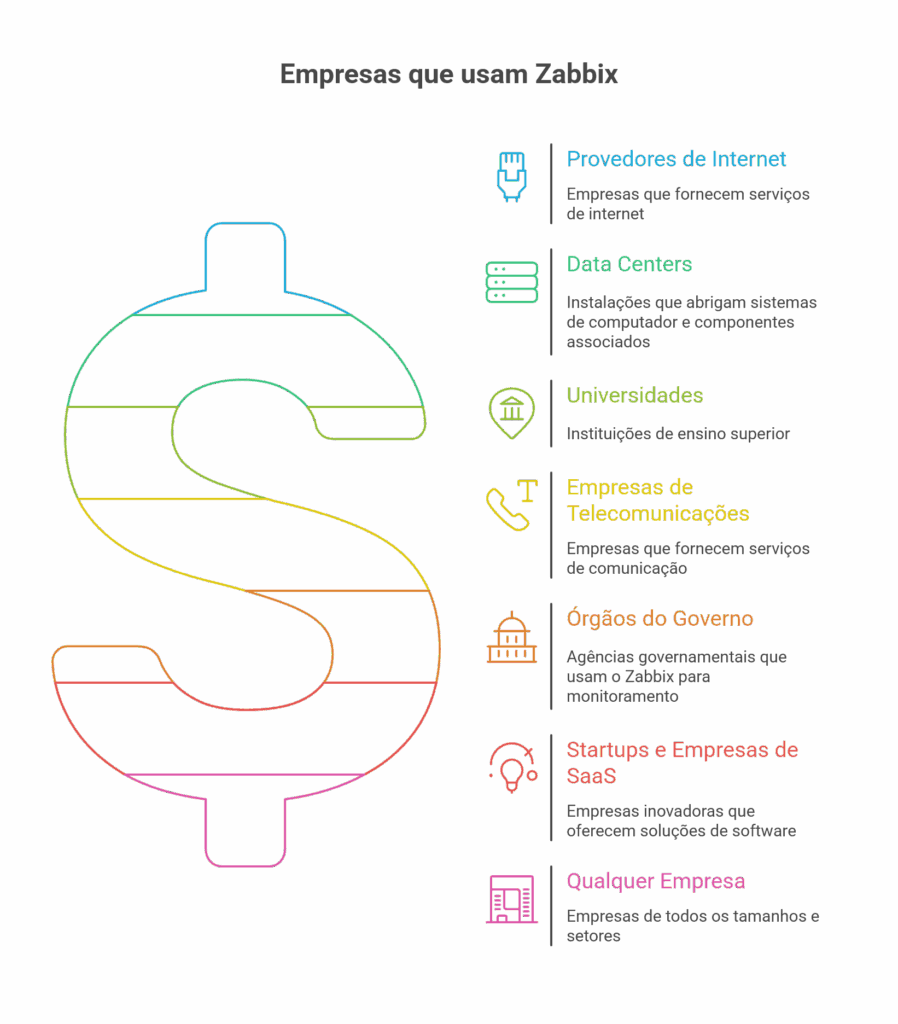 O Zabbix é usado em praticamente todos os setores e tamanhos de negócio, principalmente nos seguintes perfis: